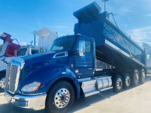 2019 KENWORTH T680DUMP TRUCK, CUMMINS X15, 450 HP, AUTOMATIC, 520240 MILES,  20FT SEMI-ROUND BED, QUAD-AXLE, NEW TIRES 315 FRONT, 24.5/11R RARE 255 DROP AXLES